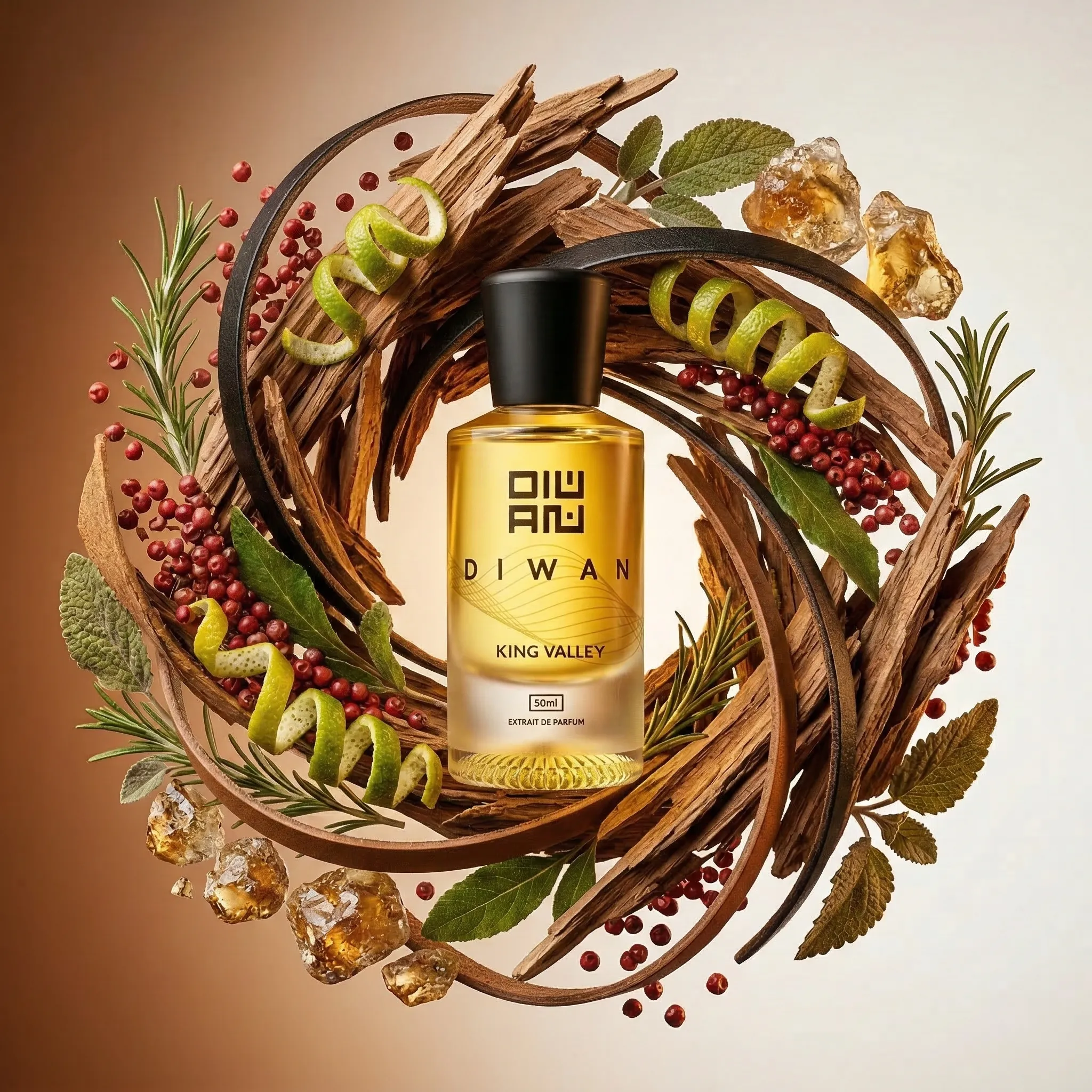 A unisex fragrance inspired by Imperial Valley by Gissah, blending oriental and woody facets in a refined structure.