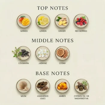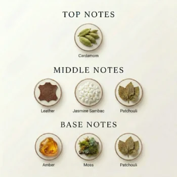 It opens with delicate notes of Jasmine, Bulgarian Rose, and Orange Blossom, unfolds into a sensual heart of Musk, and settles into a warm base of Vetiver, Cedarwood, Coumarin, and Patchouli.