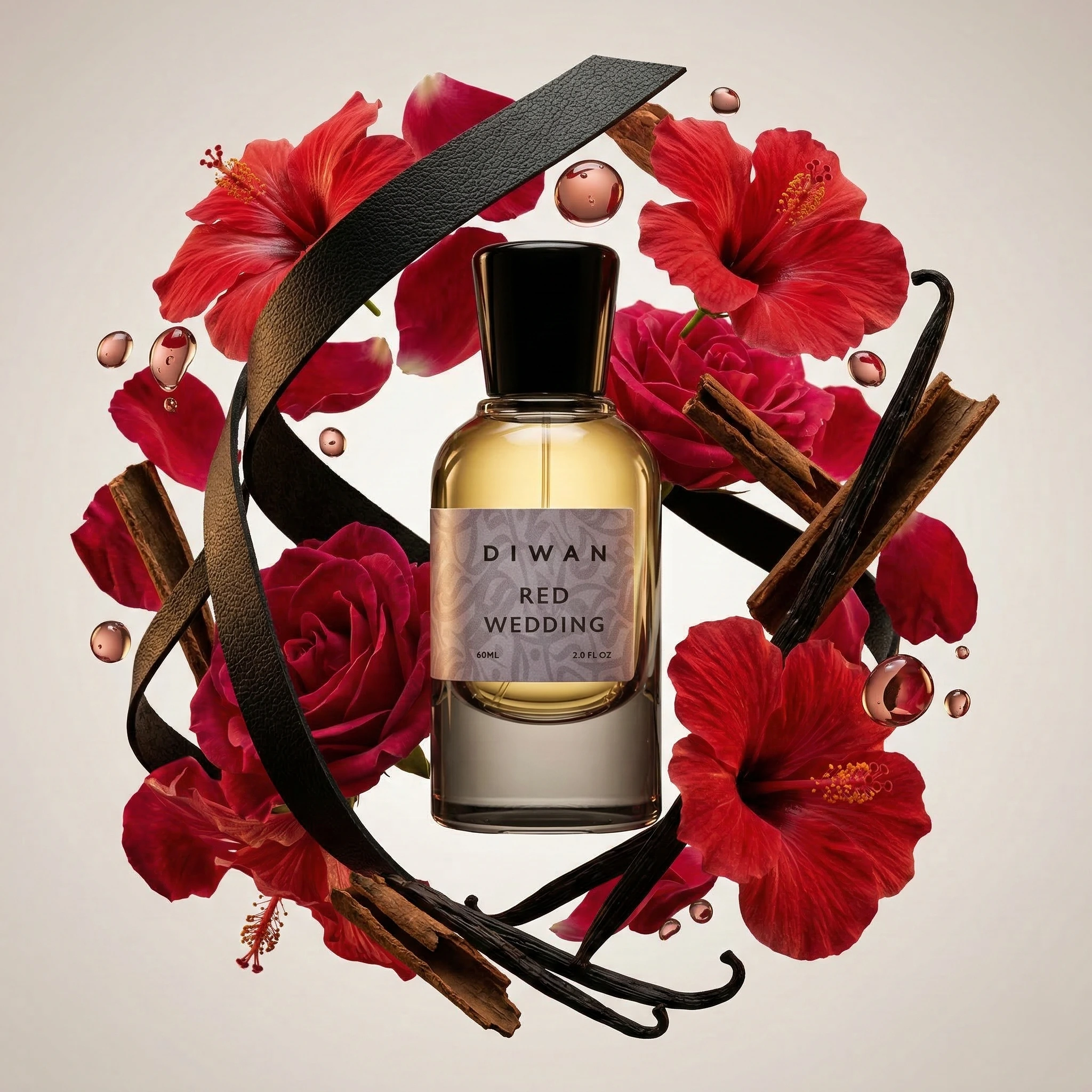 A fragrance inspired by Hibiscus Mahajád by Maison Crivelli, capturing a vibrant celebration of hibiscus, black‑currant, pomegranate and luxurious depth. It opens with bright notes of Hibiscus, Black Currant, and Pomegranate, unfolds into a rich heart of Damascena Rose, Spearmint, and Cinnamon, and settles into an opulent base of Vanilla, Leather, and Amber.