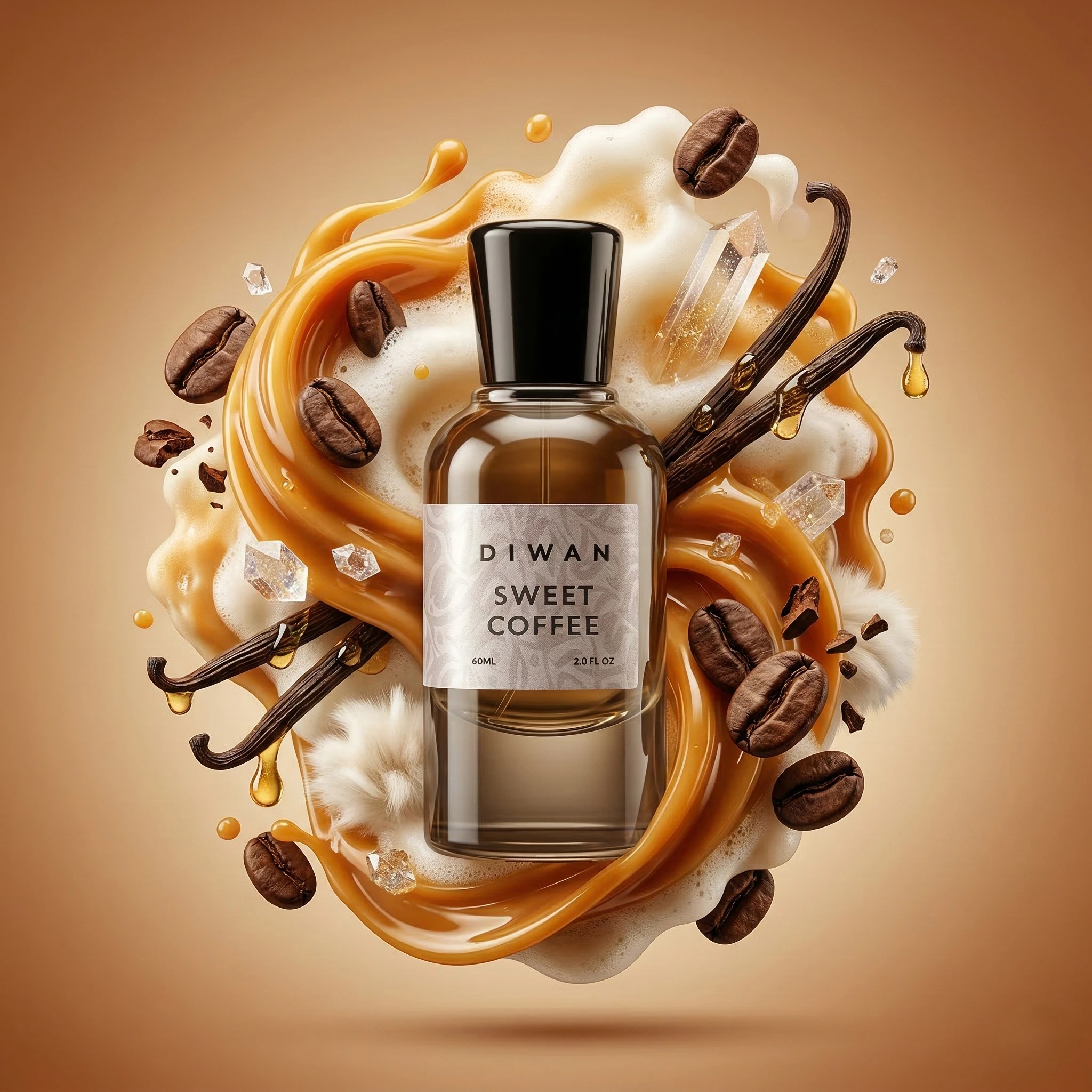 A fragrance inspired by Bianco Latte by Giardini Di Toscana, capturing the cozy indulgence of a sweet caramel‑vanilla coffee moment.